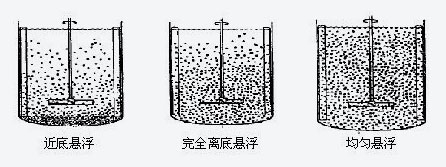從固液攪拌的特性來分,固液攪拌設(shè)備的目的主要有兩個:(1)使固體粒子完全懸浮起來,簡稱完全離底懸浮。(2)使固體粒子在全槽均勻懸浮,簡稱均勻懸浮。這也是兩個不同的懸浮狀態(tài)。